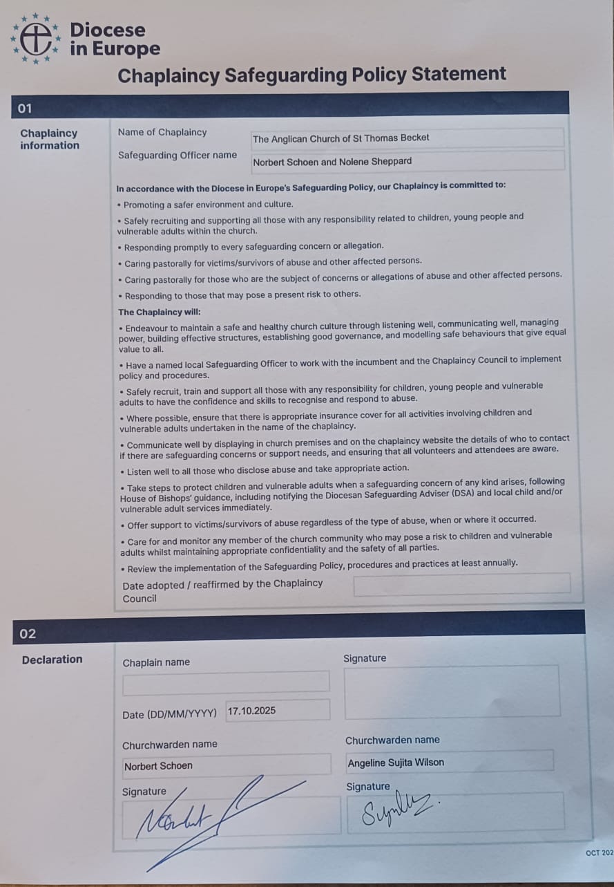 The Diocese in Europe promotes “Safe Churches” as part of our commitment to the Safeguarding of Children and Vulnerable Adults.